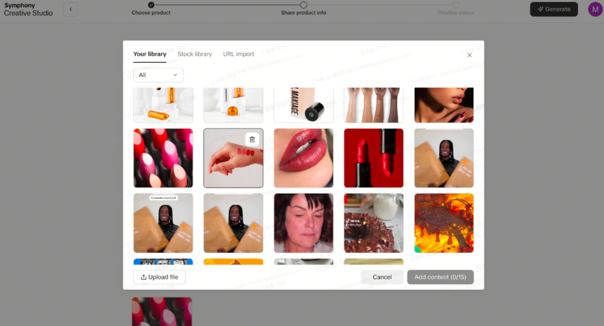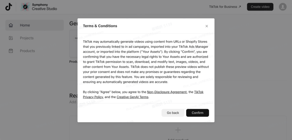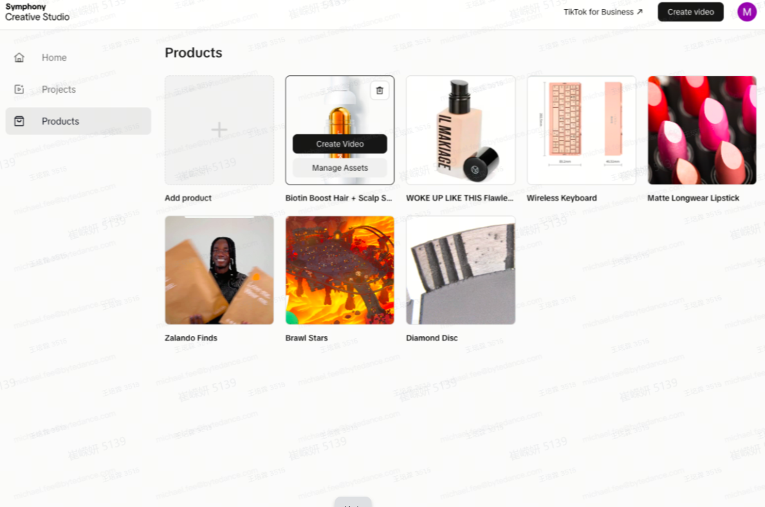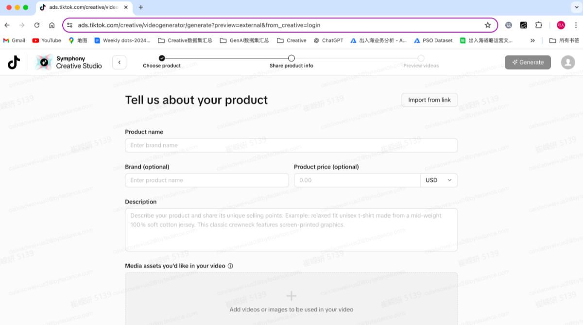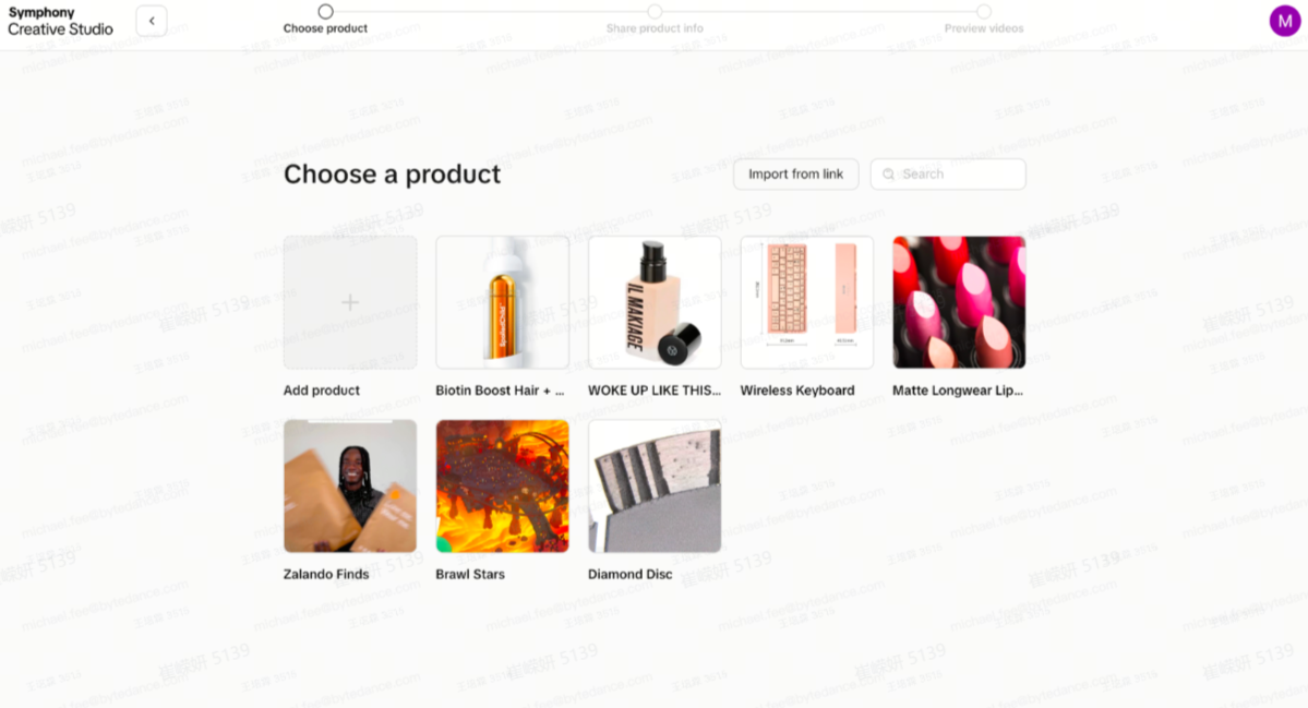 1、在主页选择了Generate&remix videos后,选择已提前添加的商品或增加新商品。但需要注意的是,只有当您有已经上传到项目中的商品时,这个选项才会出现。如果没有,这个步骤将被跳过。