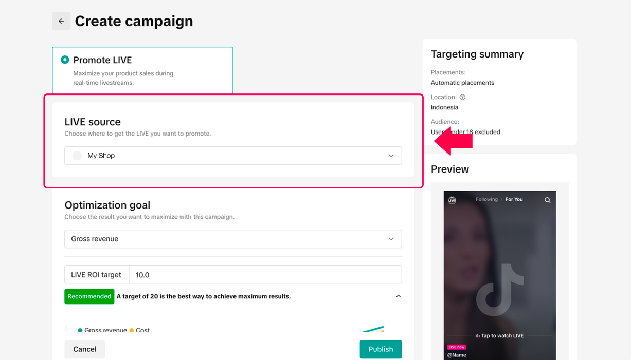 TikTok Shop(小店)LIVE GMV MAX 广告创建步骤