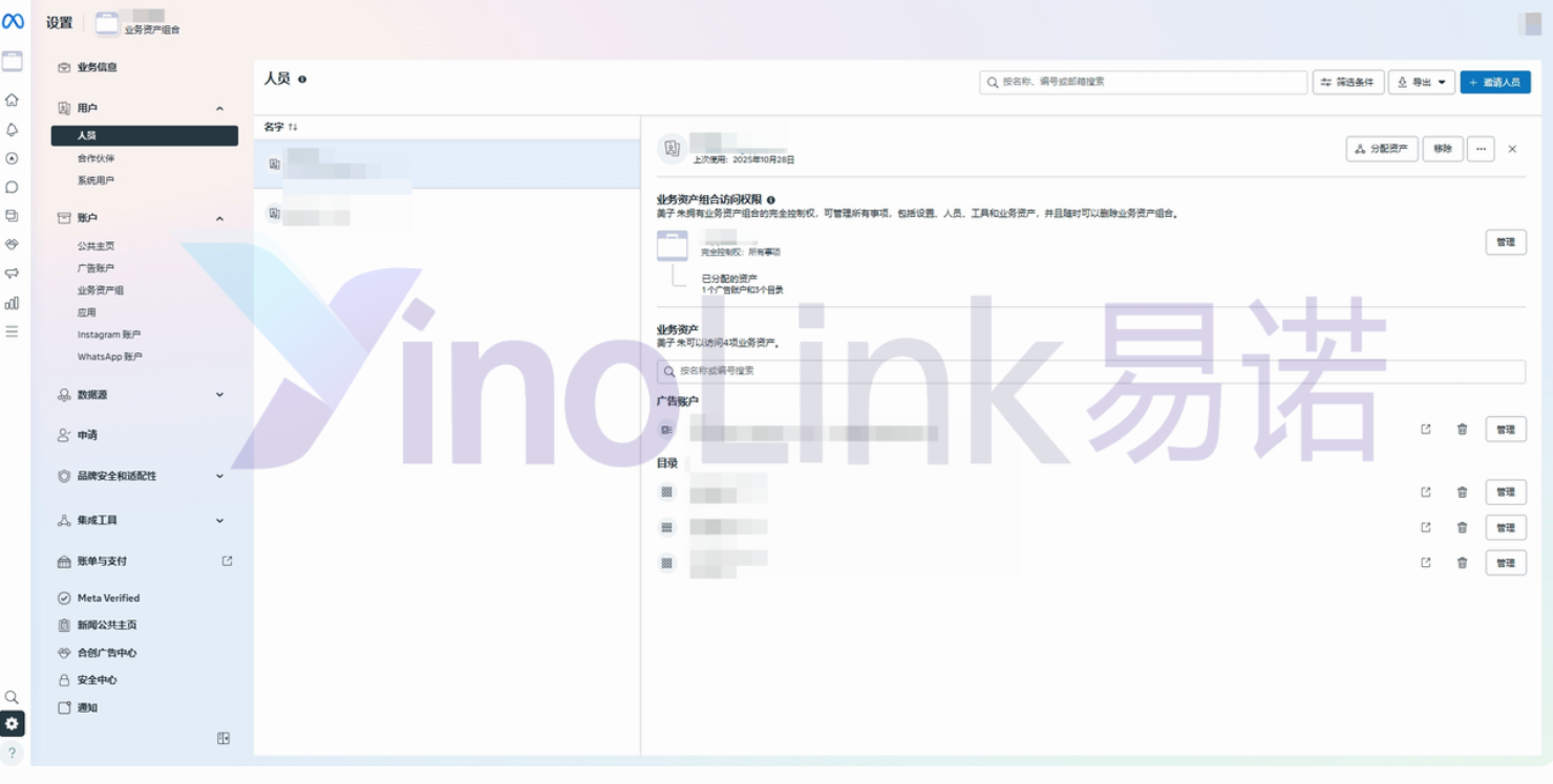 在BM后台点击“用户”→“个人用户”→“添加”,输入对方邮箱并选择身份,即可分配广告账户、公共主页、像素等资产的权限。具体添加及分配资产步骤可参考商务管理平台资产的添加及分配-YinoCloud帮助中心