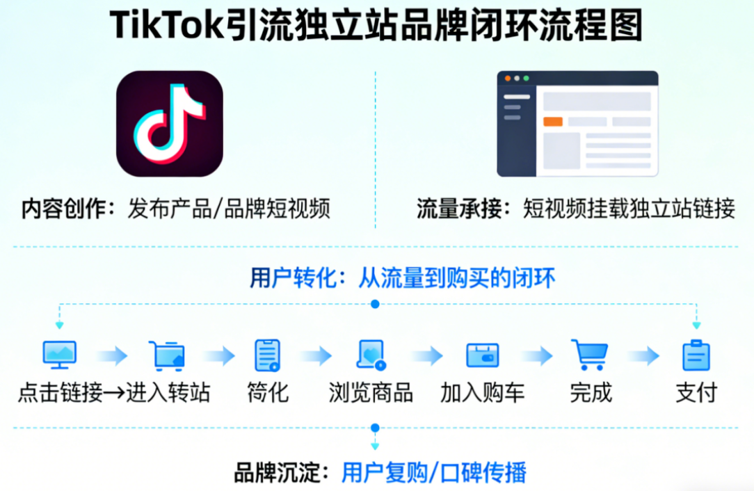 很多独立站商家不知道,TikTok 电商链路,正是为独立站量身定制的“流量加速器”。它的逻辑很简单:用户在 TikTok 刷到种草视频,点击链接直接跳转你的独立站,完成浏览、加购、支付——全程流畅无阻。你不需要自己造流量,TikTok 的海量用户和内容生态,就是你的引擎。